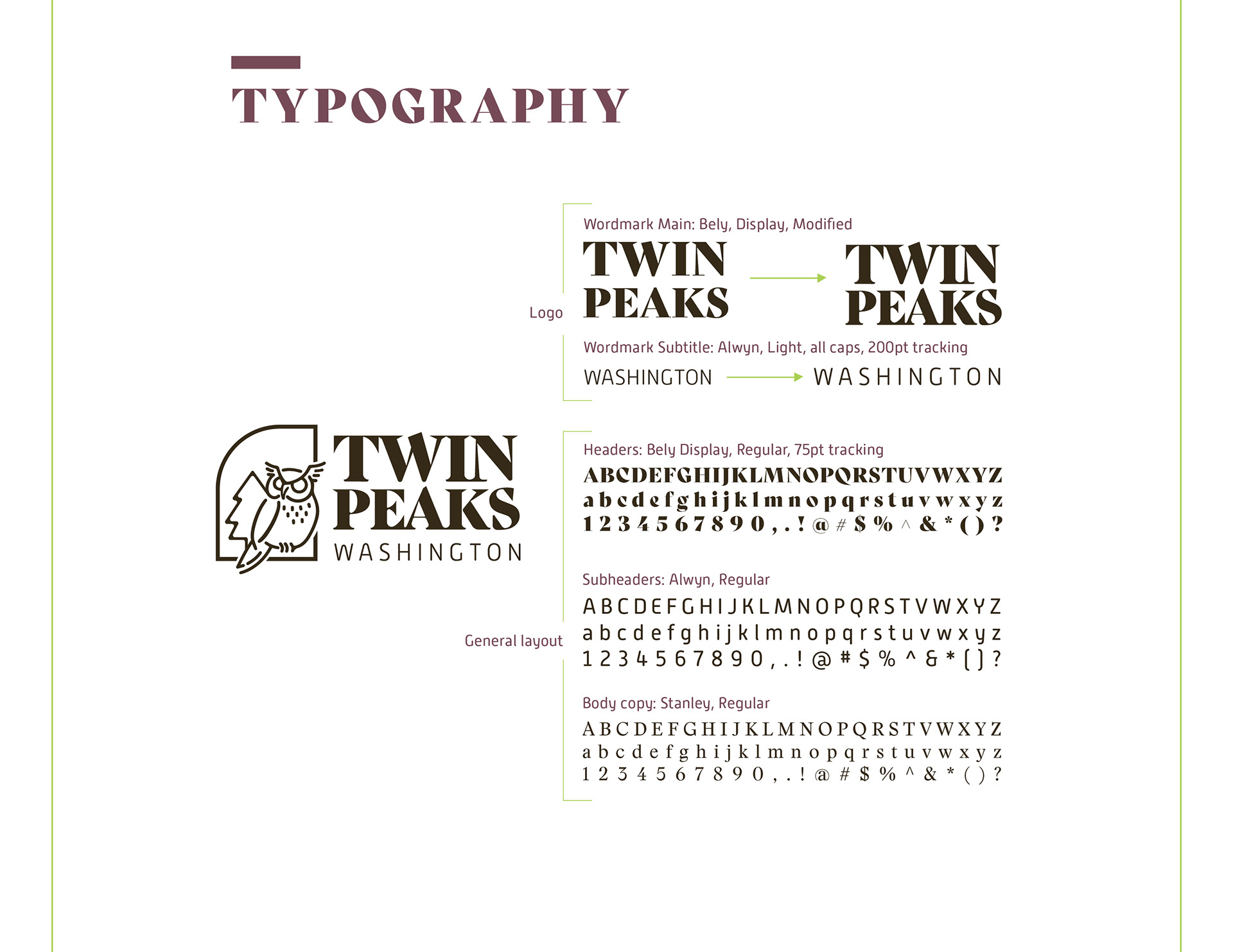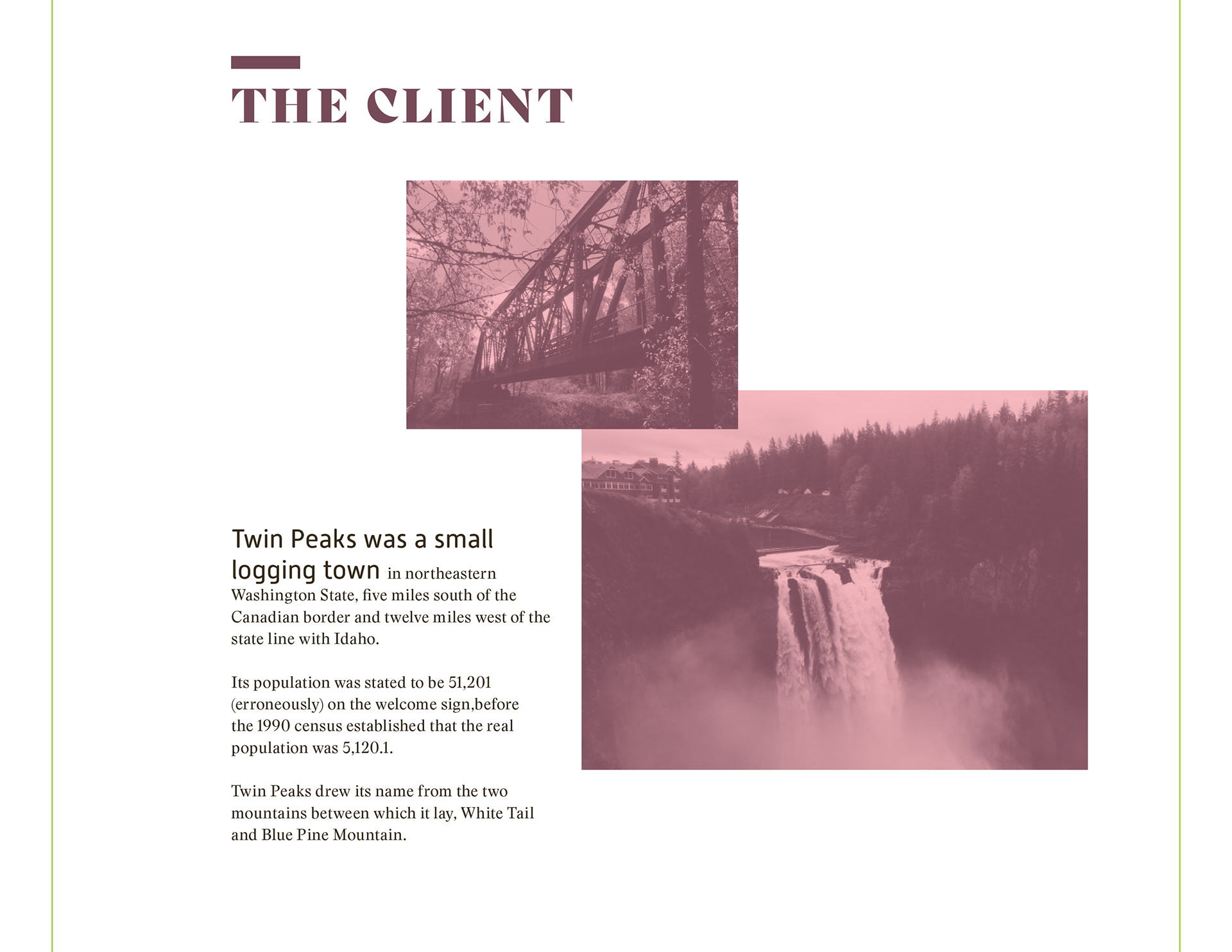 A hypothetical rebranding effort for the town of Twin Peaks, Washington, a fiction setting for the cult classic TV series of the same name.