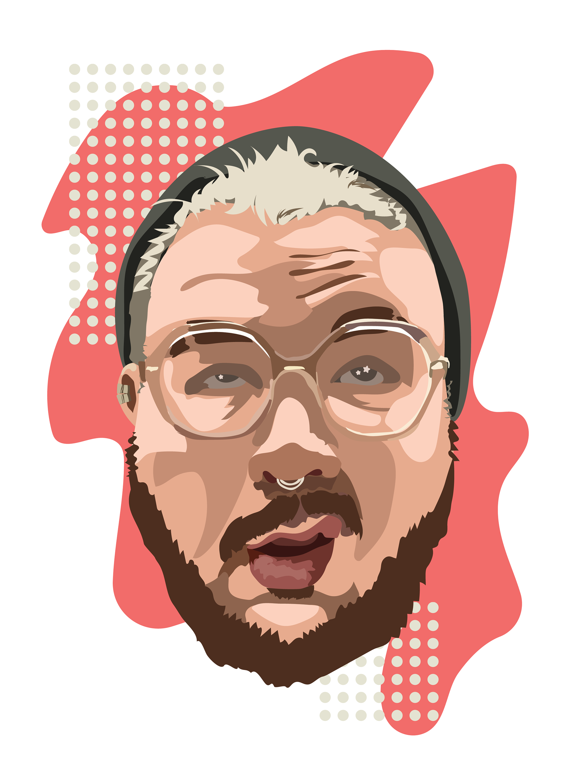 A collection of self portraits done in various media which feature myself making contorted facial expressions